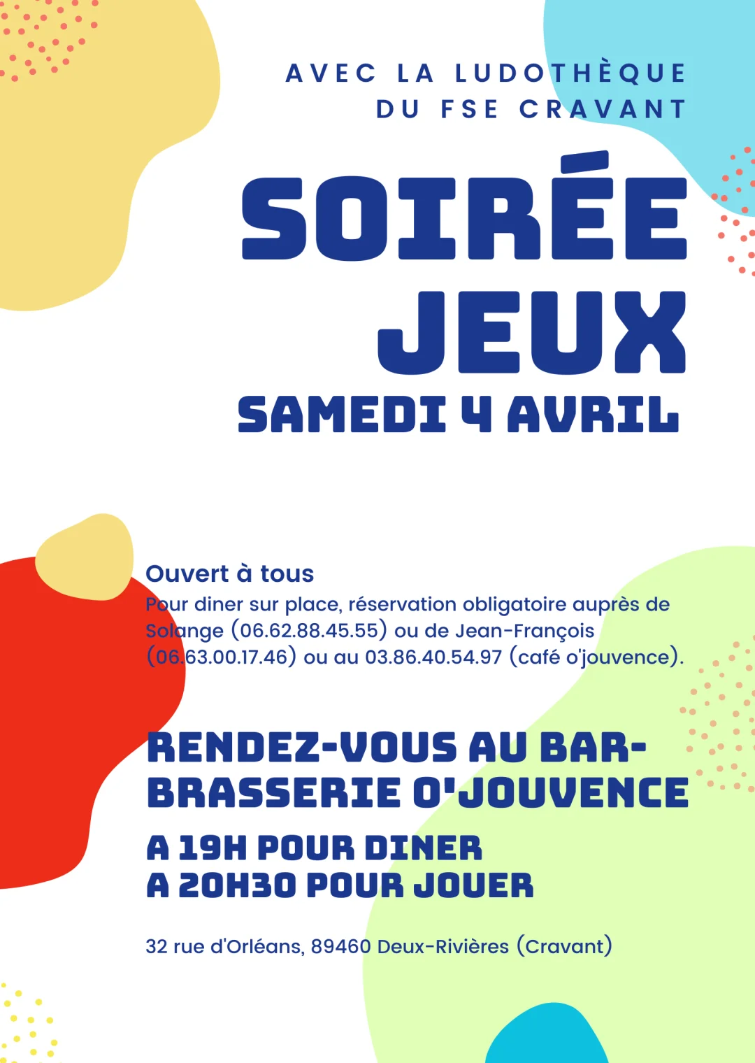 Vendredi 3 avril de 19:00 à 23:00
